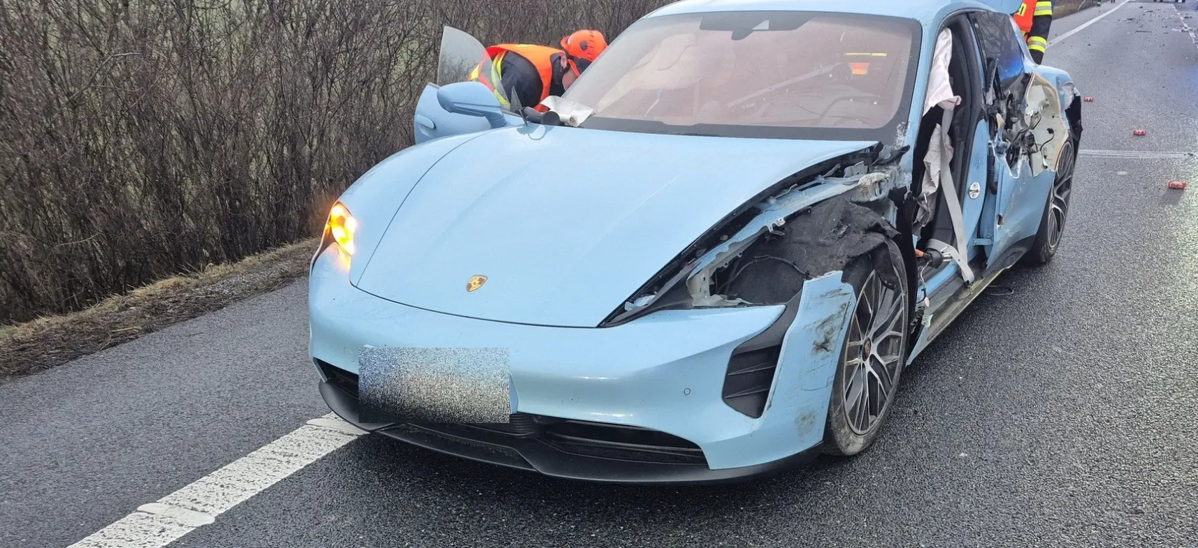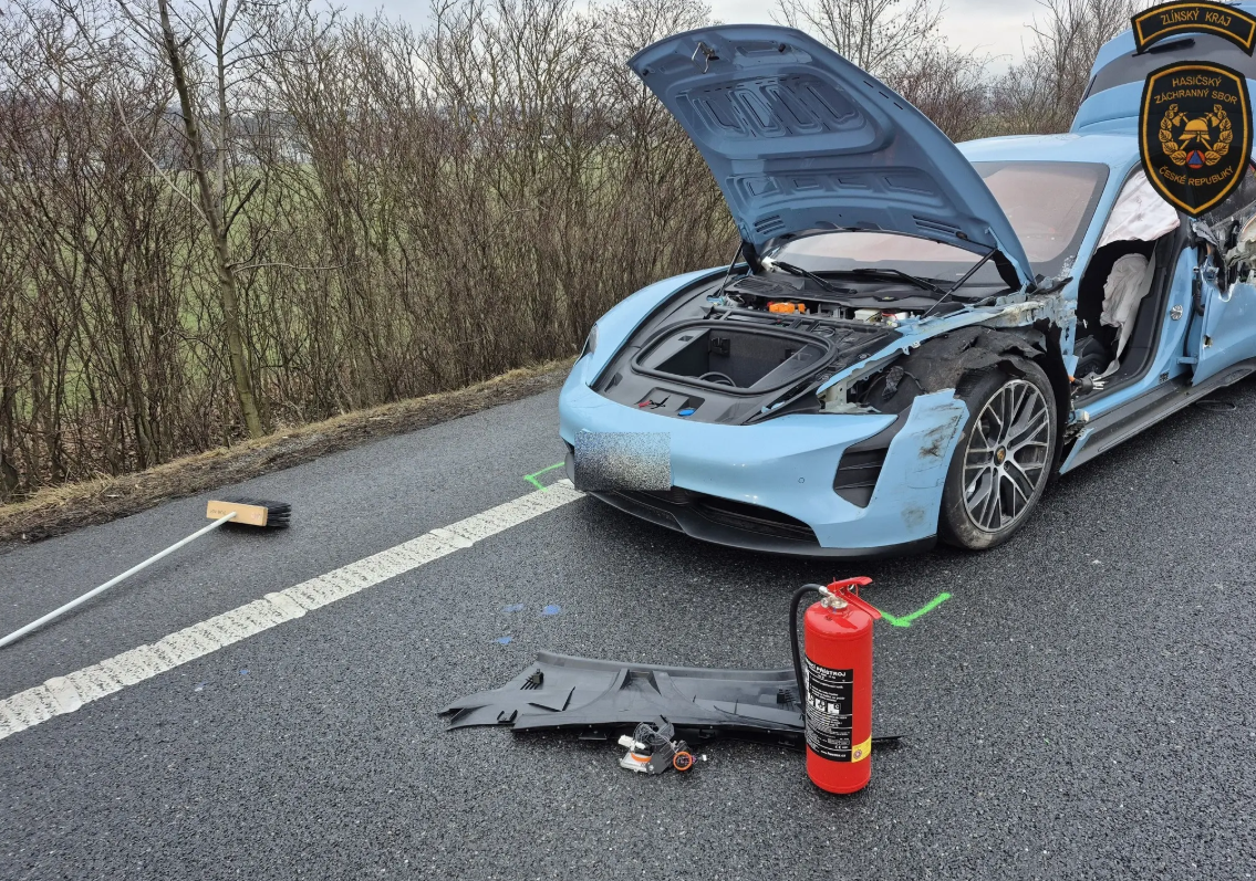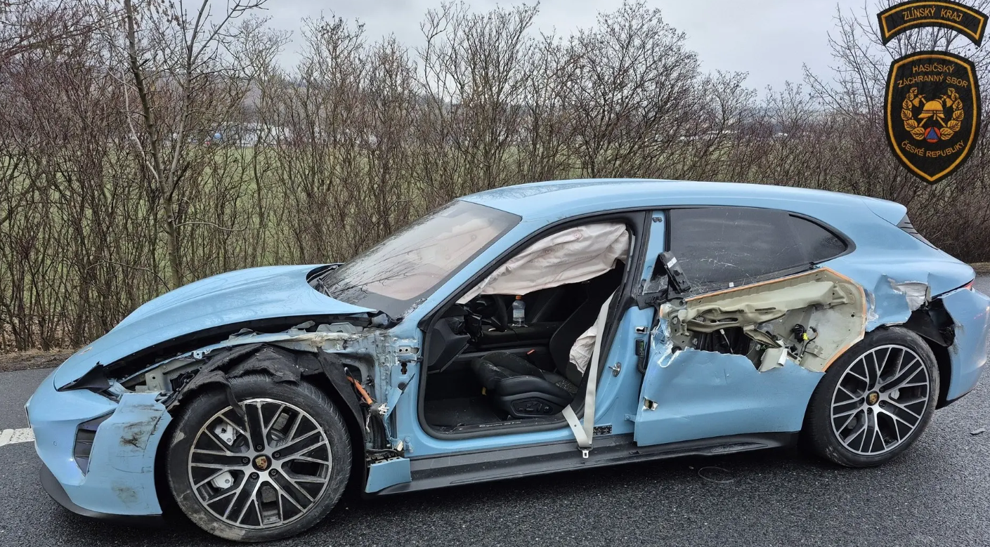 В понедельник неподалёку от населённого пункта Велетины в районе Угерске-Градиште произошло дорожно-транспортное происшествие с участием электрического Porsche и фургона. Столкновение выглядело серьёзно, однако, к счастью, обошлось без пострадавших.