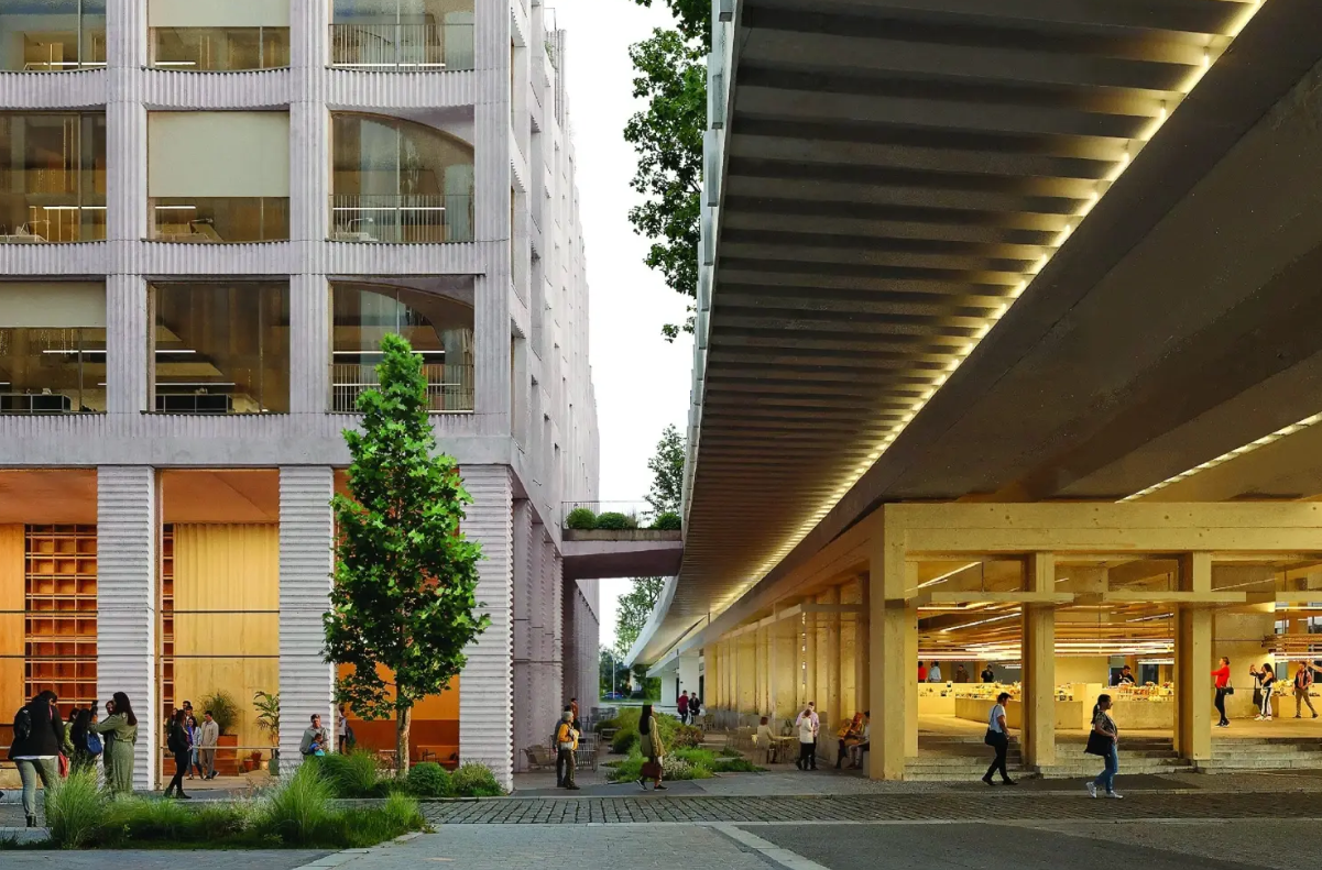Один из кварталов предложит формат «коллективного жилья» — небольшие квартиры с обширными общими пространствами, внутренними галереями и общественными зонами на крыше.