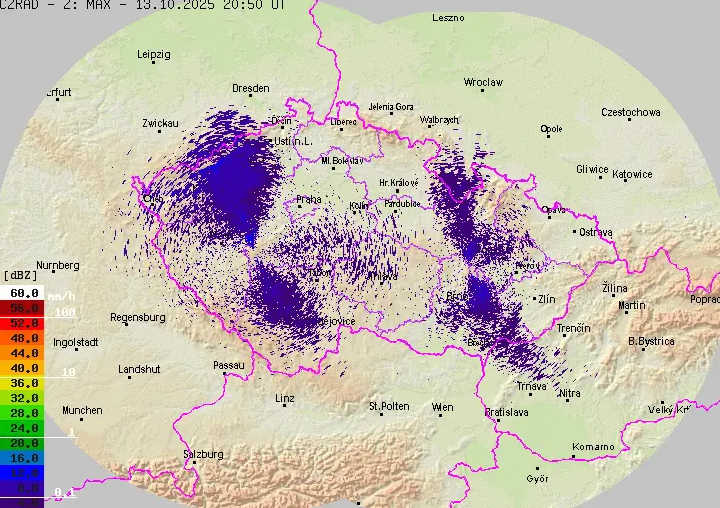 После нескольких дней непогоды над Чехией наконец установились идеальные условия для перелёта птиц — и это стало видно даже на метеорологических радарах. В ночь с понедельника на вторник приборы зафиксировали слабые, но многочисленные сигналы отражений. Оказалось, что их причиной стали огромные стаи — сотни тысяч перелётных птиц.
