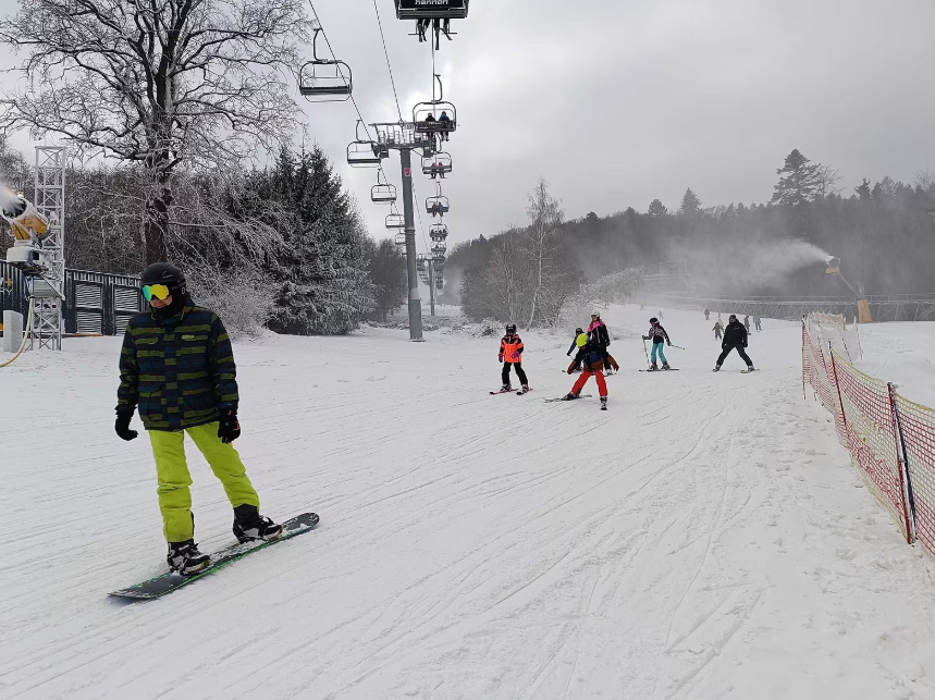 Зимняя атмосфера на Monínci официально стартовала — в субботу здесь полноценно открылась лыжная сезона. Уже с утра десятки любителей зимних развлечений приехали недалеко от Седльце-Прчице, чтобы первыми опробовать склон. Настрой подогрело морозное утро: температура весь день так и не поднялась выше нуля, что создавало идеальные условия для первых спусков.