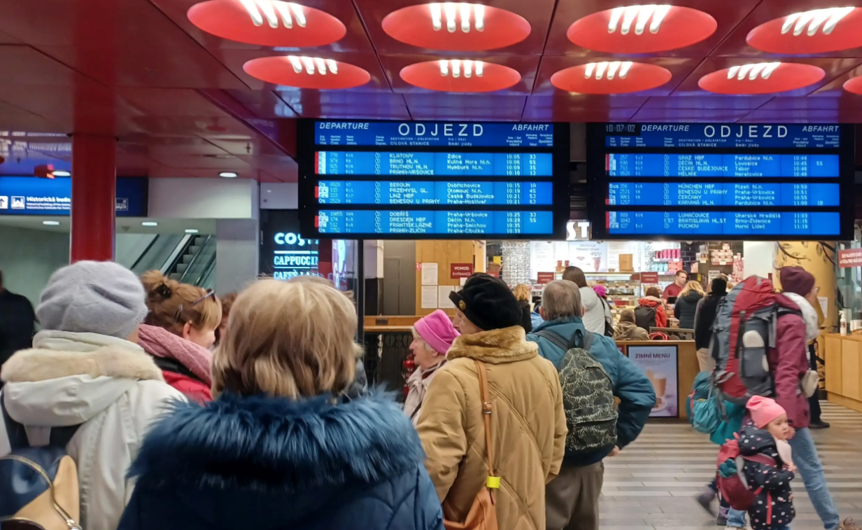 Утро пятницы на главном железнодорожном вокзале Праги выдалось напряжённым для тысяч пассажиров. Из-за повреждения контактной сети движение поездов было временно остановлено и серьёзно ограничено сразу по нескольким направлениям.
