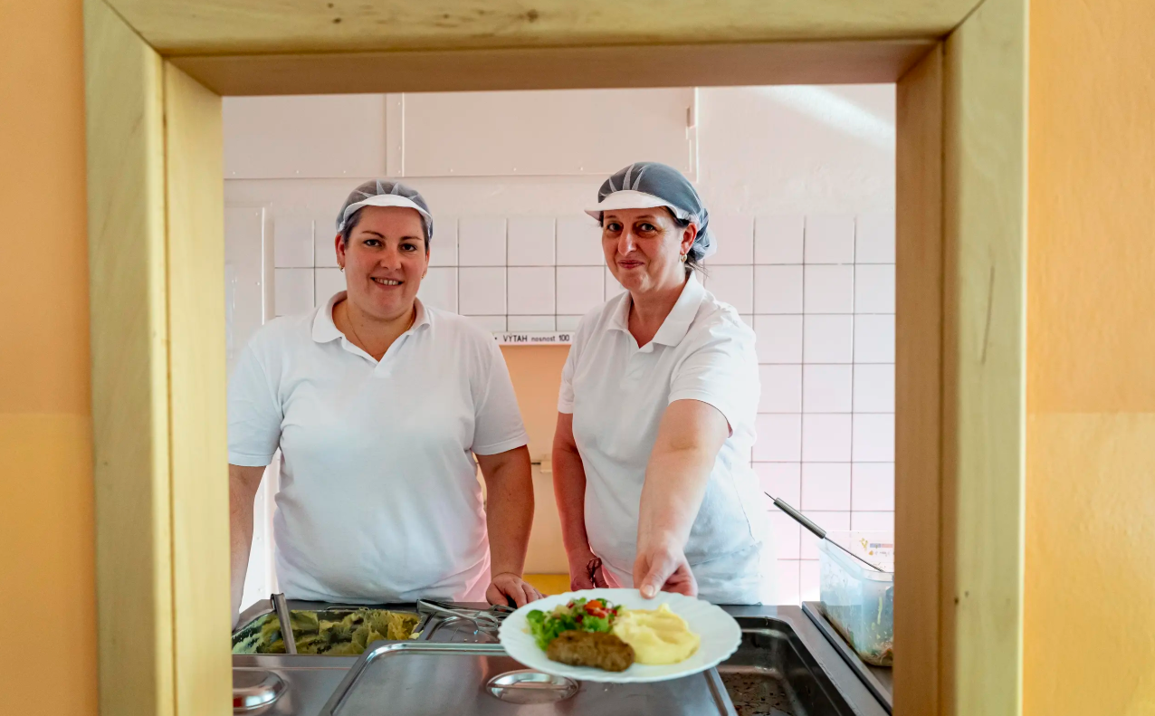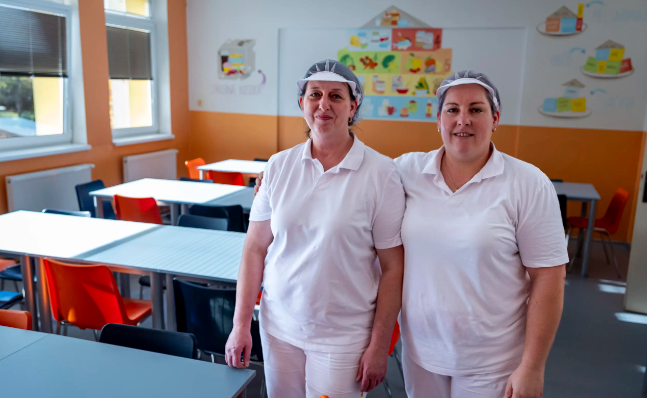 Эти «секретные» ингредиенты добавляют повара школьной столовой Хвождян — сестры Рената Превратилова и Габриэла Вондрашкова, которые работают здесь уже много лет. Вместе они каждый день кормят около ста школьников и двадцати сотрудников. Все получают одно и то же меню — сытное, полезное и при этом вкусное.