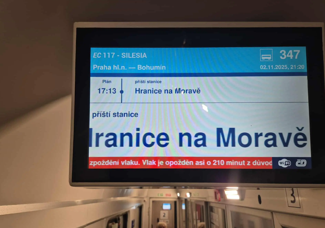 Нервозность, переходящая в раздражение, потом в полное отчаяние. Детский плач, разряженные телефоны, неработающие розетки и самое страшное — неизвестность, когда всё это закончится. Именно так прошёл вечер воскресенья для тысяч пассажиров, оказавшихся запертыми в поездах на главной железнодорожной линии между Оломоуцем и Остравой. Движение полностью остановилось из-за кражи кабелей, и инцидент парализовал десятки составов разных компаний.