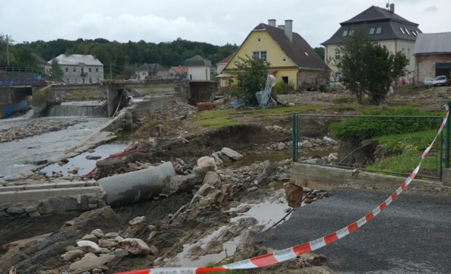 Жители Микуловиц в районе Есеника переживают шок и горечь. Недавнее наводнение принесло разрушительные последствия — инфраструктура полностью разрушена. Более 200 человек вынуждены покинуть свои дома и сейчас находятся в временном жилье.