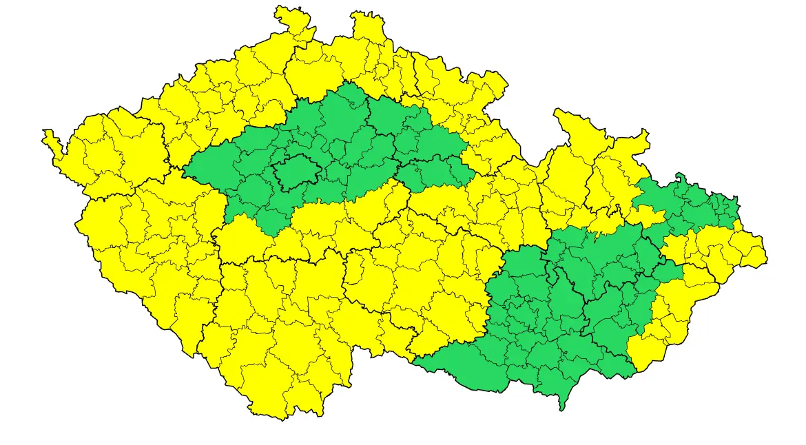 Предупреждение о низких температурах затронет практически все края Чехии, за исключением Праги и Южноморавского края. Оно вступит в силу в полночь с воскресенья на понедельник и, по прогнозам, будет действовать до четверга включительно, до дневных часов.