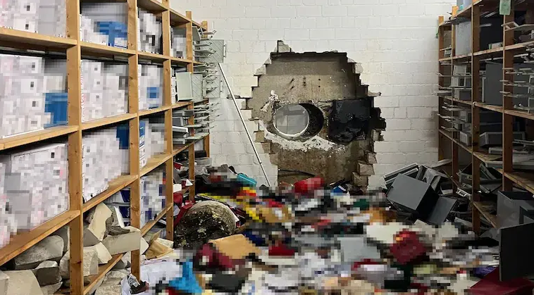 На место незамедлительно прибыли полицейские и пожарные. Во время осмотра здания они обнаружили дыру в подвальном помещении, ведущую прямо к хранилищу. Первичное расследование показало, что злоумышленники попали в здание через паркинг на соседней улице, откуда и просверлили путь в сейф, а затем тем же маршрутом скрылись с добычей.