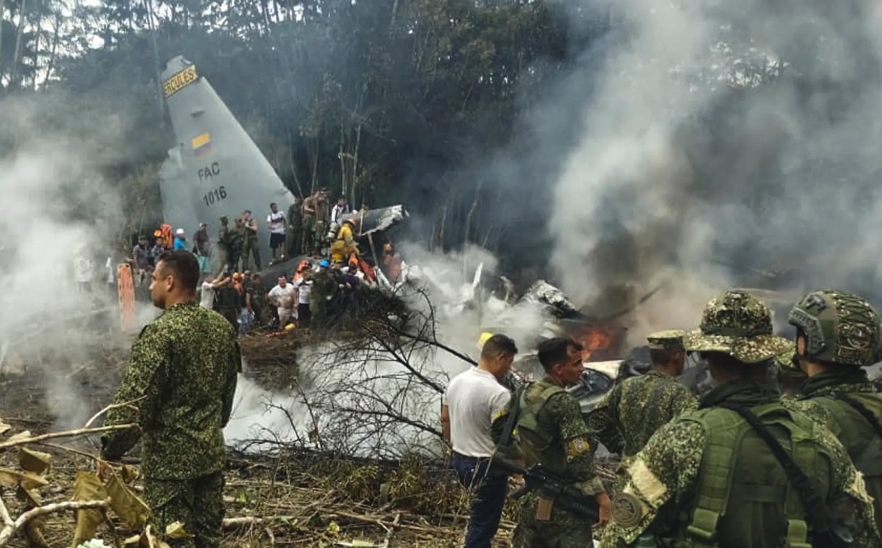 Военный самолет Hercules C-130, на борту которого находилось 110 человек, разбился в понедельник вскоре после взлета недалеко от города Пуэрто-Легисамо в колумбийской провинции Путумайо. После падения машину охватило пламя. В район катастрофы, расположенный рядом с границей с Перу, экстренно направлены спасатели. По предварительным данным агентства AFP, погибло не менее 80 солдат.