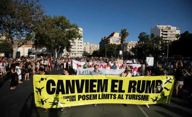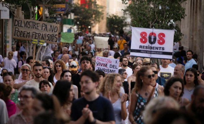 В воскресенье вечером на Майорке десятки тысяч людей вышли на протесты против массового туризма и недоступности жилья. По данным полиции, на акции собрались около 20 тысяч человек, однако организаторы утверждают, что протестующих было 50 тысяч. Об этом сообщает французская радиостанция RFI.