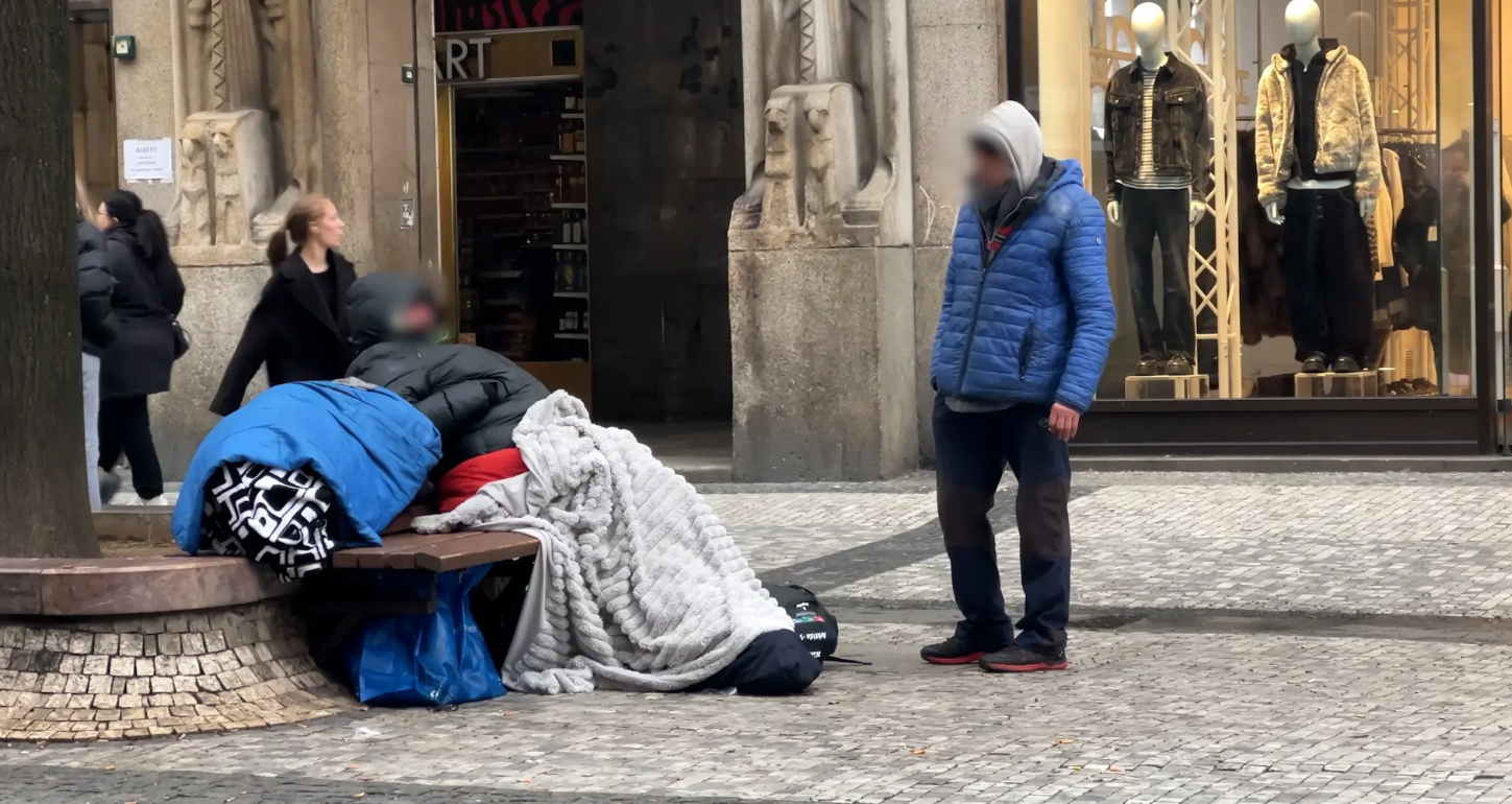 Трамвайная остановка, а на ней лавка, занятая людьми без дома. Для Праги это давно не редкость. Часто на таких местах проводят не только дни, но и ночи. Современные остановки с навесами, строительство которых обходится городу в сотни тысяч крон, в итоге становятся труднодоступными для пассажиров, ожидающих транспорт.