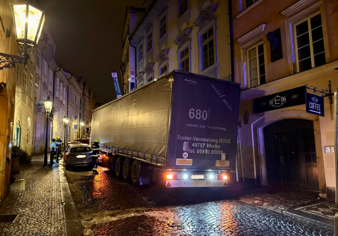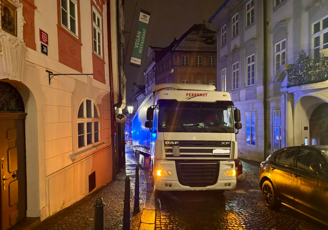 Инцидент произошёл в ночь на четверг. Как сообщили пражские пожарные, водитель застрял примерно в середине улицы и не смог ни продвинуться вперёд, ни развернуться. Самостоятельные попытки выбраться из ловушки только усугубили ситуацию — при манёврах фура повредила припаркованный легковой автомобиль.